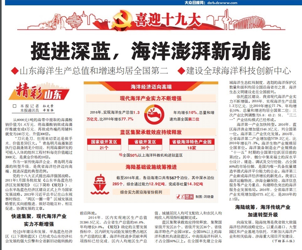 山東海洋生產總值和增速均居全國第二 2017-10-07
