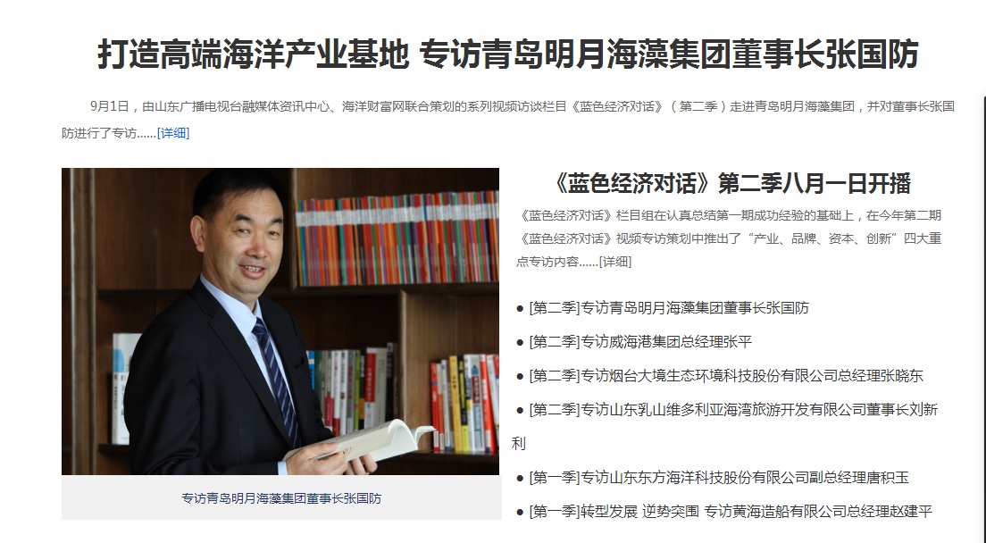 打造高端海洋產業基地 專訪青島明月海藻集團董事長張國防 2017-09-02