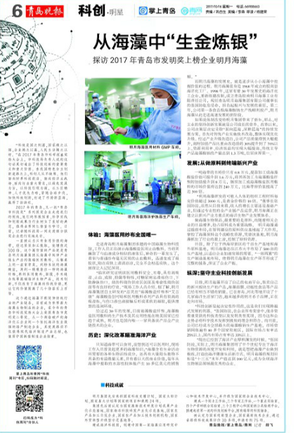 從海藻中“生金煉銀”| 探訪2017年青島市發明獎上榜企業明月海藻 2017-10-17