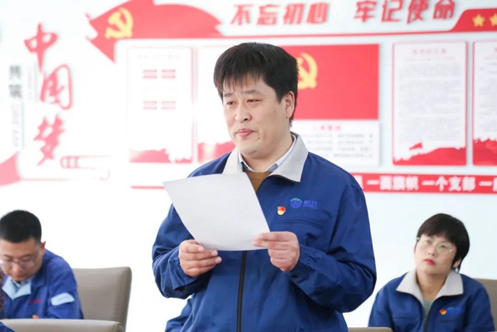 伴隨著雄壯的《國際歌》響起,入黨儀式拉開序幕。首先,由劉兆志宣讀了參加本次入黨宣誓儀式黨員的基本情況。隨后,新發展黨員在逄錦龍的帶領下,莊嚴宣誓,并依次發言,表達對黨的深厚感情和為黨的事業奮斗終身的決心。行政黨支部書記董宗國代表支部書記對新黨員送上祝福。