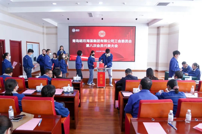 為充分發揮工會橋梁作用,進一步促進明月海藻集團持續、穩健、高質量發展。11月23日上午,青島明月海藻集團召開工會換屆選舉大會,選舉產生第八屆工會委員會和經費審查委員會委員。青島市黃島區總工會副主席王憲臣,區總工會基層工作部部長江敏,集團黨委書記、董事局主席張國防,集團工會主席徐玉強,以及數十位工會會員代表出席會議。會議由集團黨政辦公室總監楊曉菁主持。