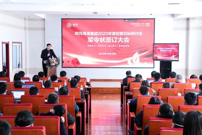 為全面推進明月新戰略,制定好2023年經營目標,在團隊中充分達成戰略共識、目標共識,凝聚力量奮進新征程。12月16日-18日三天時間,青島明月海藻集團在明月海藻世界召開2023年度目標研討會。集團黨委書記、董事局主席張國防,總裁劉兆志,各子公司總經理和經營管理團隊出席會議。