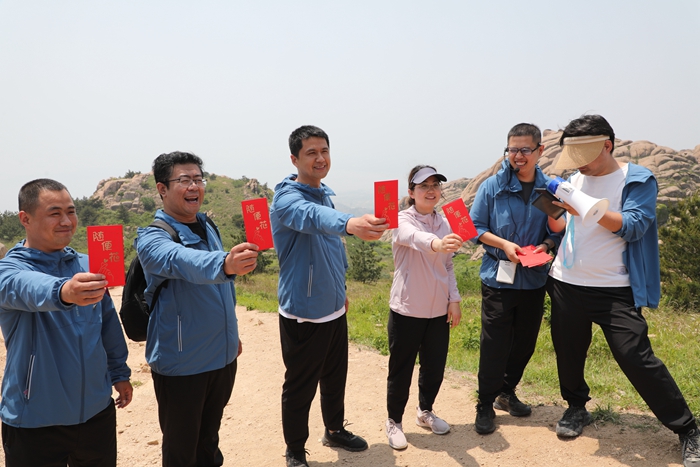 拾步登山,大家一路上你追我趕,奮力攀登,笑聲不斷。登山前半程消耗了大量的體力和能量,但珠山優美的景致,清新的空氣,讓大家心情更加舒暢,忘記了疲勞。一路上,大家推心置腹、相互交流,暢談個人生活和公司工作開展,在心靈上達成了一種默契。在闖關環節,各支戰隊展示了精彩的才藝,順利過關。