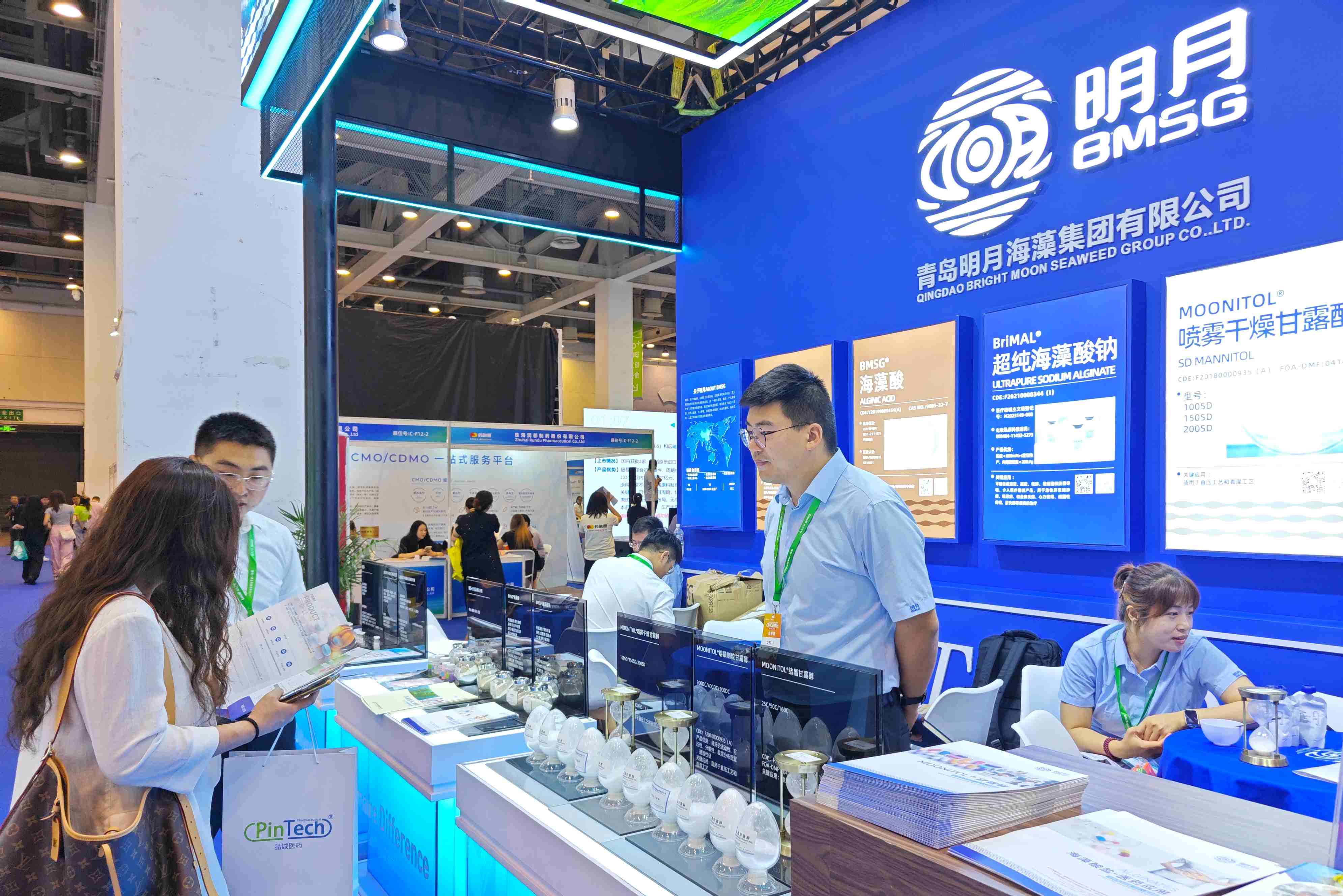 作為全球“海藻+健康”解決方案的領(lǐng)導(dǎo)者,明月攜多款核心產(chǎn)品精彩亮相,包括海藻酸鈉、海藻酸、甘露醇、山梨醇、超純海藻酸鈉等,展示了源自海洋的創(chuàng)新力量如何助力醫(yī)藥行業(yè)的可持續(xù)升級。展位現(xiàn)場,明月專業(yè)的銷售與研發(fā)團隊與眾多客戶深入交流,獲得廣泛關(guān)注與合作意向。