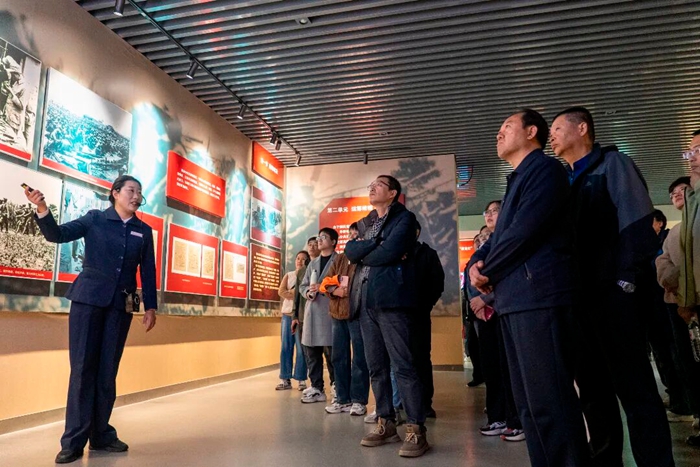 研學首站來到新四軍軍部舊址暨華東野戰軍誕生地紀念館。一件件珍貴文物、一幕幕復原場景,生動再現了陳毅、粟裕等老一輩革命家在此指揮宿北、魯南戰役的光輝歷程。學員們仿佛穿越時空,感受到那段烽火歲月中革命先輩運籌帷幄、不怕犧牲的崇高精神。在孟良崮戰役紀念館與戰役遺址,歷史的震撼愈發深刻。形如兩面戰旗的建筑巍然矗立,536米的主峰見證著“軍民同心、以少勝多”的英雄史詩。學員們瞻仰烈士陵園、攀登戰役遺址,深刻體悟到“黨群同心、軍民情深”所鑄就的銅墻鐵壁,正是革命事業不斷走向勝利的力量根基。