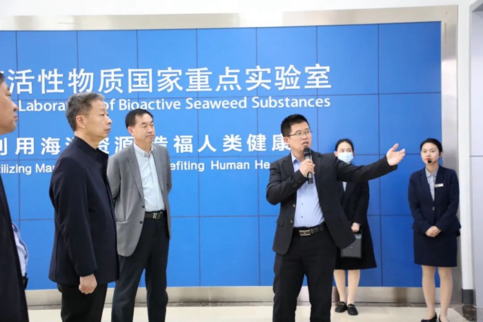 在海藻活性物質國家重點實驗室,集團總裁助理、國重實驗室副主任張德蒙向調研組介紹了近年來集團大力實施借智引智工程,以產業優勢和發展潛力吸引優秀人才共同創新創業,深入開展“產學研”合作,集聚產業領軍人才團隊,多項科研成果成功打破國外技術壟斷并實現產業化。