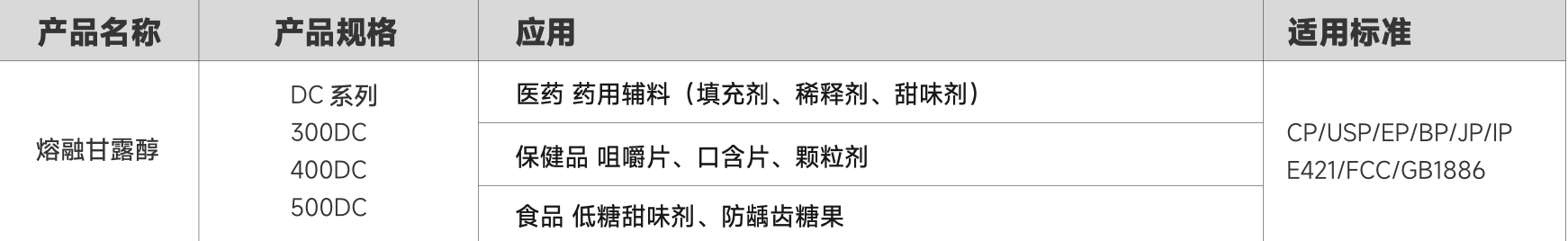 熔融制粒甘露醇是通過(guò)熔融制粒工藝制備的甘露醇顆粒,具有良 好的流動(dòng)性、壓縮性和顆粒均勻性,適用于對(duì)壓片性能要求較高 的制劑工藝。該系列產(chǎn)品特別適用于口崩片、咀嚼片、速釋片等 固體制劑的制備。